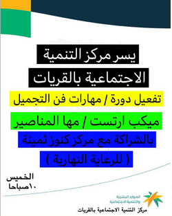 فعل مركز التنمية الاجتماعيه بمحافظة القريات دورة بعنوان ( مهارات فن التجميل ) بالشراكة مع مركز كنوز ثمينة( للرعاية النهارية ) ، قدمتها الميك أب ارتست ( مها المناصير ) .